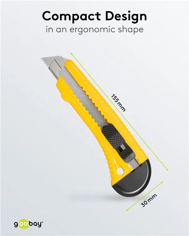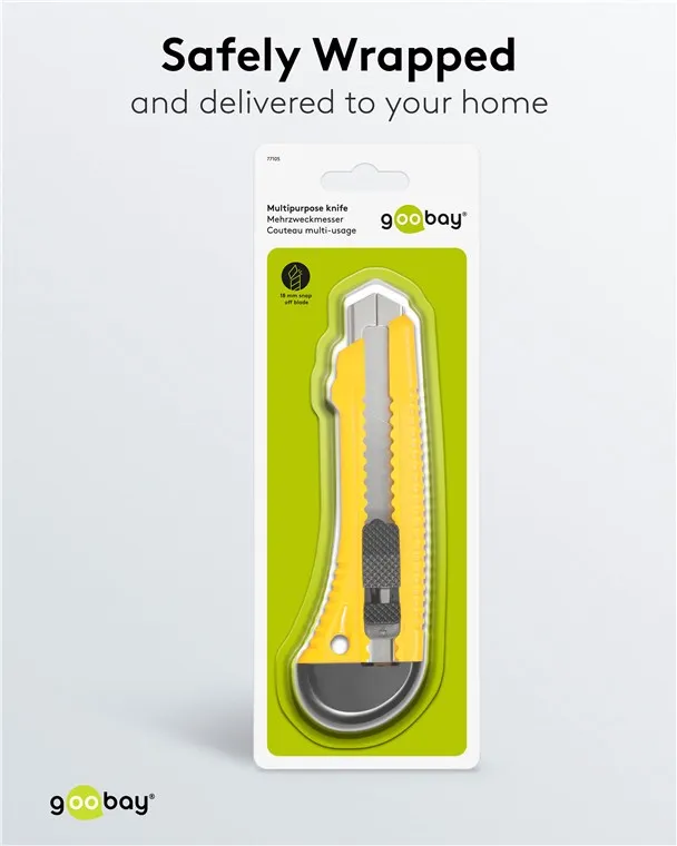 Praktisk och säker universalkniv för skärarbeten inom hushåll, hobby och gör-det-själv-sektorn. Brytbladet kan brytas av vid markeringarna om spetsen blir trubbig för att maximera användningen av bladet.