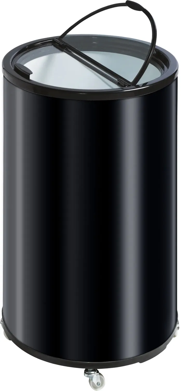 Behöver du en snygg kyl för drycker? Denna tysta och lättanvända tunnforms-kyl passar in i alla utrymmen med sin lilla storlek. Du kan hålla den snygg i helsvart eller om du vill kan du skaffa företagets dekaler runtom ifall kylskåpet exempelvis används på mässor. Du kan justera temperaturen mellan 2-10 °C enligt dina önskemål. Dess tysta ljudnivå gör den nästan obemärkt. Kylskåpets volym är 40 liter, vilket rymmer ca 60-65 st. 330 ml burkar. Kylskåpets glaslucka underlättar användningen och spar energi då du kan se innehållet innan du lyfter locket. På så sätt kan du välja din favoritdryck i lugn och ro utan att kylan flyr. Om kylskåpets placering är besvärlig finns det hjul under så att du lätt kan flytta det vid behov.